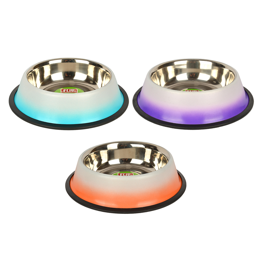 Flip çelik mama kaplarının alt kısmında kaymayı engelleyen lastik bulunur. Devrilmeyi ve hareket etmeyi engelleyen lastik sayesinde kabın bulunduğu yerin kirlenmesi önlenmiş olur.
